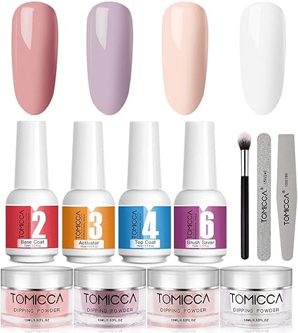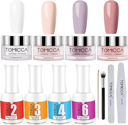 Tomicca Dip Powder Nail Kit Nail Dipping Powder System Starter Kit Of 4 Colors 0 5oz With Nail File Buffer For French Nail Amazon Co Uk Beauty