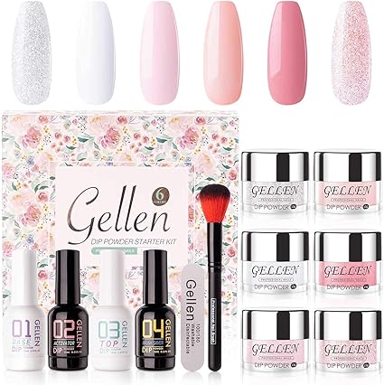 Gellen Dipping Powder Starter Kit 6 Baby Pink And Glitter Colors Dip Powder Acrylic Powder System Starter Nail Kit Fresh Kit Manicure Nail Art Set Amazon Co Uk Beauty
